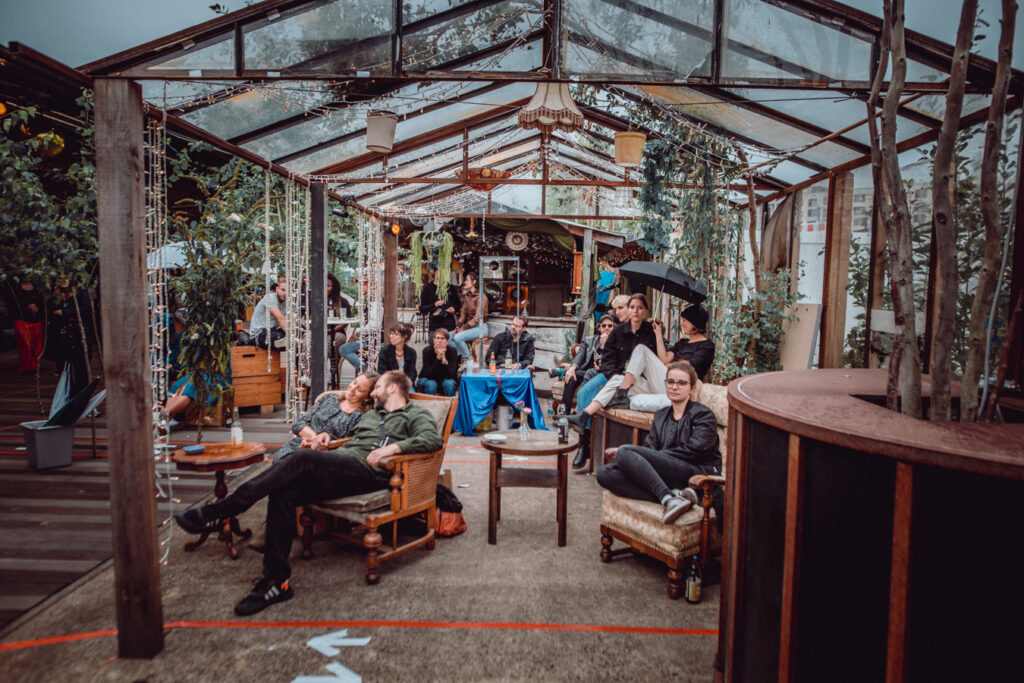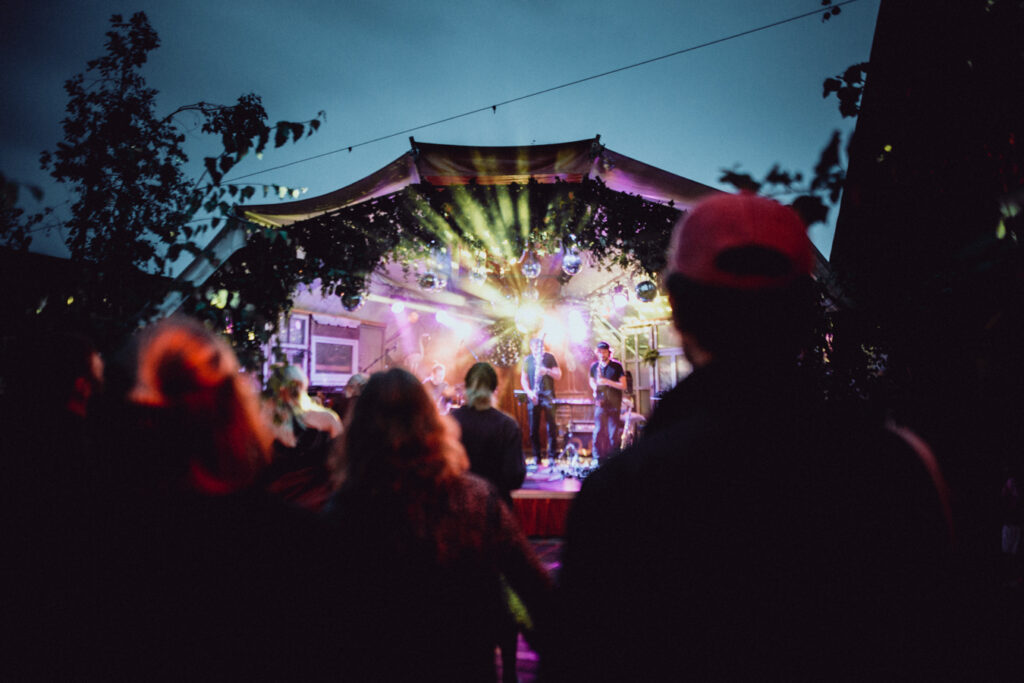Das Wetter ist uns nicht gerade wohlgesonnen, wir tanzen aber im Regen zu den vier Acts, die uns in diesem Jahr eine Symbiose aus Jazz und elektronischer Musik auf die Bühne bringen. Komplettiert wird das Line-Up durch ein DJ-Set, eine interaktive Sound-Installation und einen Performance-Act. Und weil uns alle männlich gelesenen Team-Mitglieder abgesprungen wird, besteht das Produktionsteam des diesjährigen Festivals aus FLINTA* only!